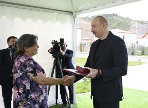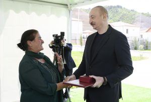 Xatirə İsayeva: Çox-çox təşəkkür edirəm, cənab Prezident. Allah Sizə cansağlığı versin. Bu gözəl şəraiti yaratdığınıza görə təşəkkür edirəm. Çox-çox təşəkkür edirəm.