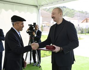 Azərbaycan Prezidenti İlham Əliyev mayın 27-də Laçın rayonunun Bəylik kəndinə köçən sakinlərlə görüşüb, onlara evlərin açarlarını təqdim edib.