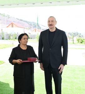 Həyat yoldaşı: Cənab Prezident, 2012-ci il dekabrın 24-də laçınlı keçmiş məcburi köçkünlər üçün Ağcəbədi rayonunda salınmış Taxtakörpü qəsəbənin açılışına gələndə Siz demişdiniz ki, – mən də onda xidmət edirdim, – inşallah, torpaqlarımız azad olunacaq, bundan da yaxşı evlər tikib sizə açarları təqdim edəndə deyəcəksiniz ki, cənab Prezident, bizim şəhərimizə, bizim kəndimizə xoş gəlmisiniz.