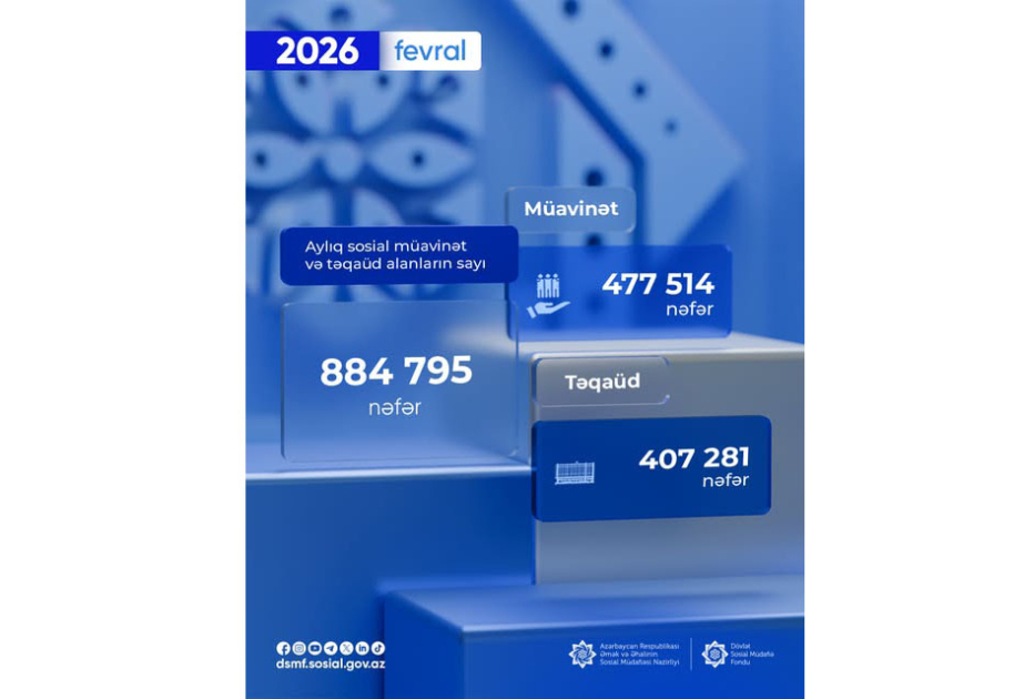 Bu ilin fevral ayında aylıq sosial müavinət və təqaüd alanların sayı 884 min 795 nəfər olub.