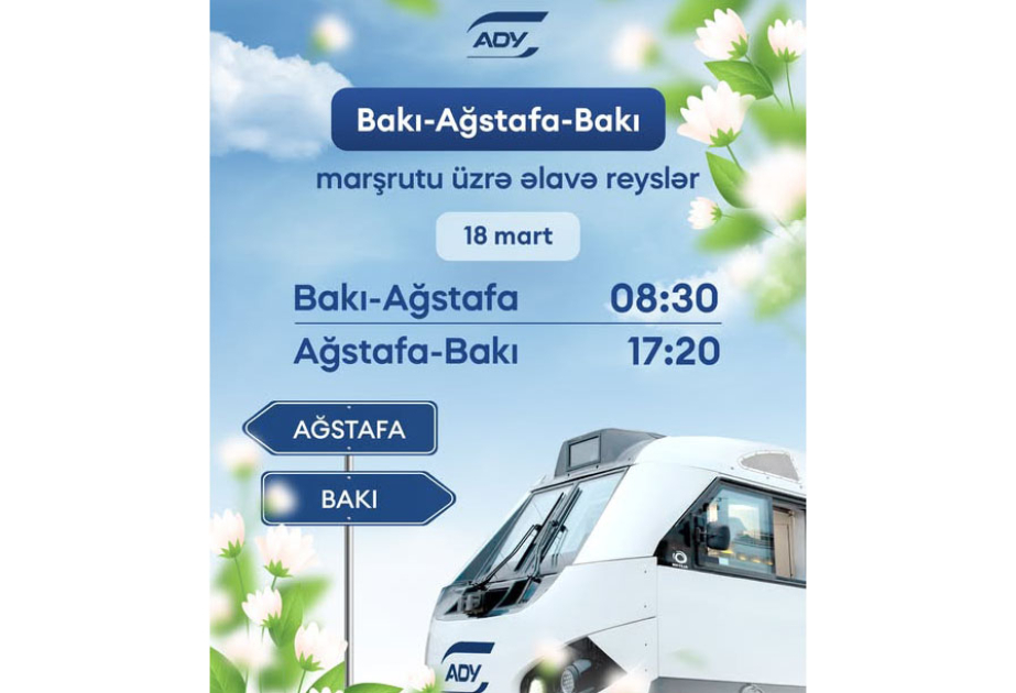 “Azərbaycan Dəmir Yolları” QSC (ADY) sərnişin tələbatını təmin etmək məqsədilə Bakı-Ağstafa-Bakı marşrutu üzrə əlavə qatar reysləri təyin edir.