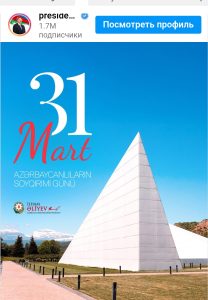 Azərbaycan Respublikasının Prezidenti İlham Əliyevin sosial şəbəkə hesablarında 31 Mart – Azərbaycanlıların Soyqırımı Günü ilə bağlı paylaşım edilib.