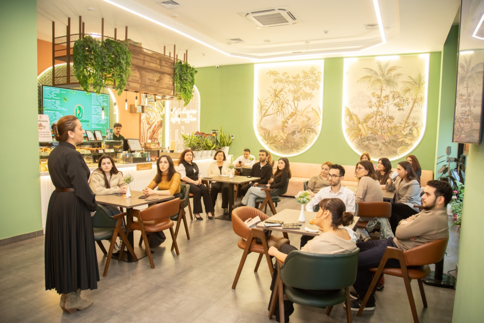 AZƏRTAC xəbər verir ki, media nümayəndələri ilə kafe əməkdaşlarının görüşü təşkil olunub və onlar birlikdə kofe hazırlayıblar. Həmçinin kafenin əməkdaşlarından birinin doğum günü qeyd olunub.