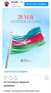 “Report” xəbər verir ki, paylaşımdakı fotonun üzərində bu sözlər yer alıb: “28 May – Müstəqillik Günü”.